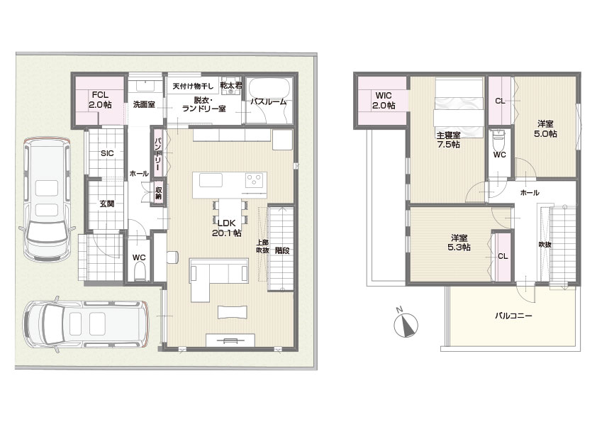 3LDK + FCL /ランドリー室/パントリー/ WIC /バルコニー